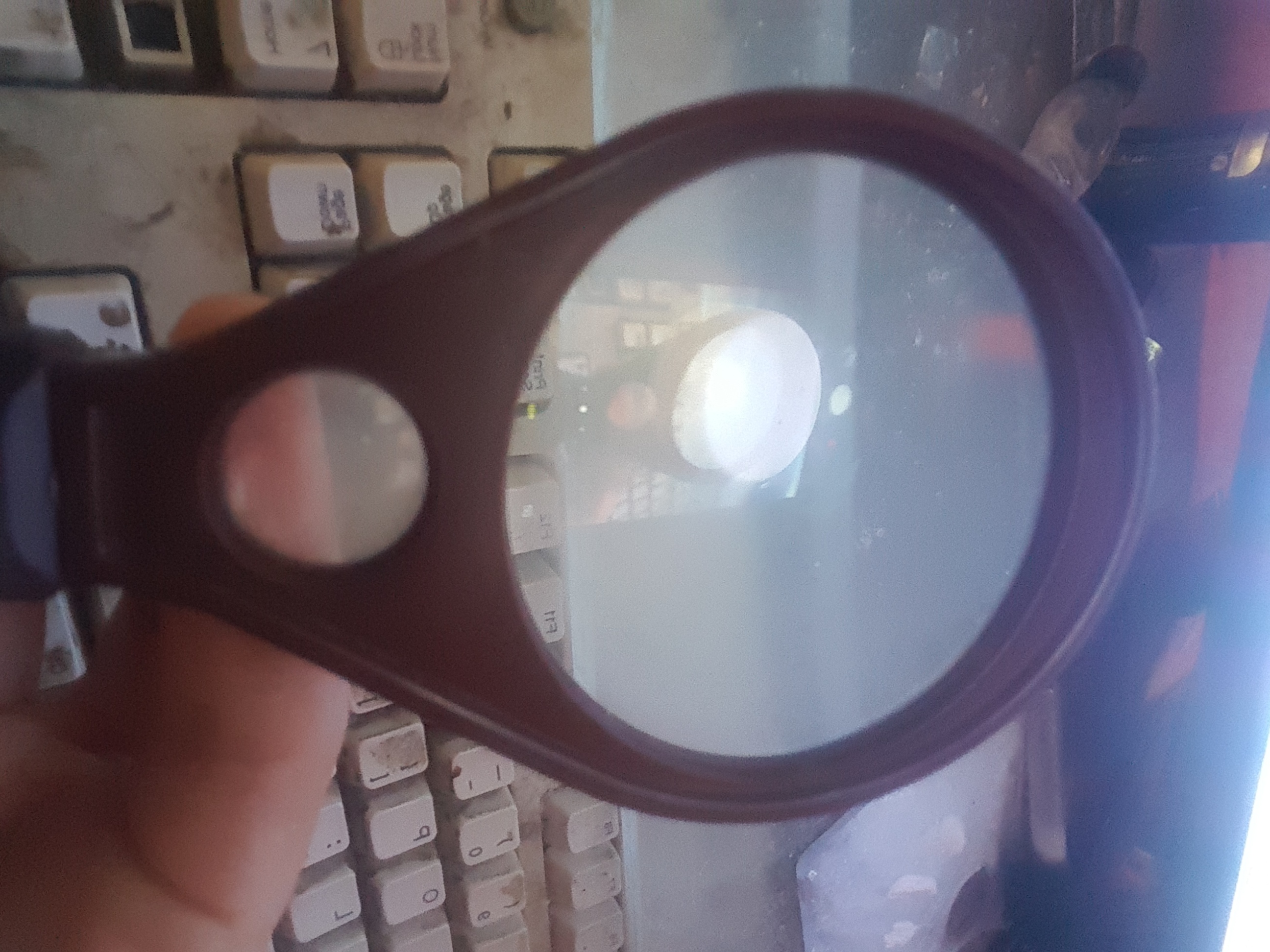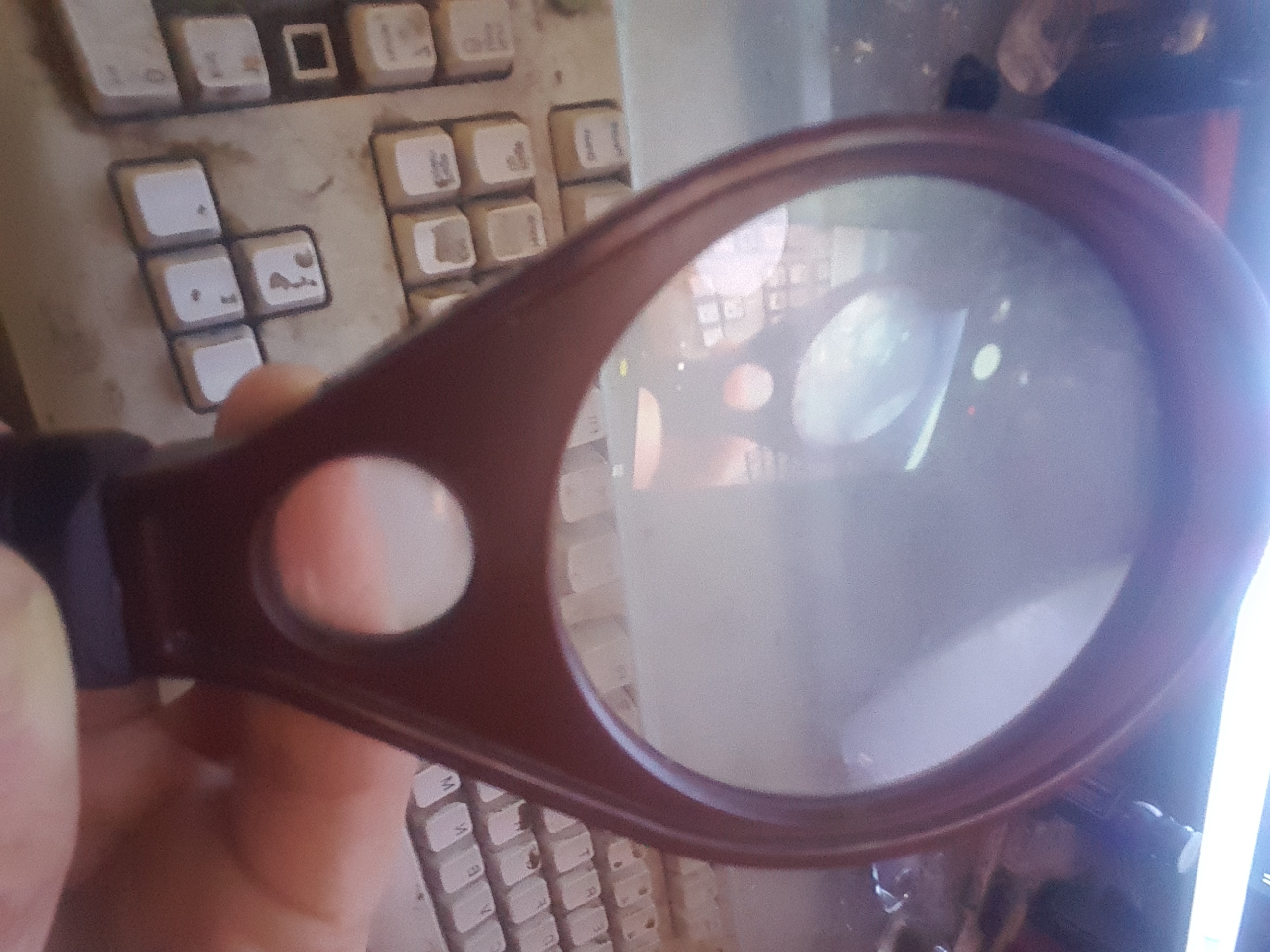 So, I put a bottlecap on my desk, took a magnifying glass, used a phone to film the whole shbang, then slowly started to pull out the magnfying glass to a wider shot. It started to put the image of the phone into the magnifying glass (from the bottom of the lens, to the top). So, I could see an image of the FRONT of the phone screen, in the lens, together with the cap, etc , like a camera, that's sending to a TV that the camera is pointing to, it creates an infinite tunnel.